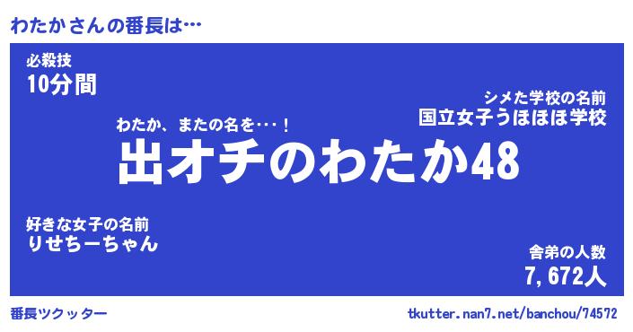| ファンタジー風あだ名 | 『ワタフェル』『エターナルワタカー』 |