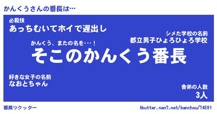 | ヒーロー風カッコイイあだ名 | 『スーパーカンクウ』『魔戒騎士カン』 |