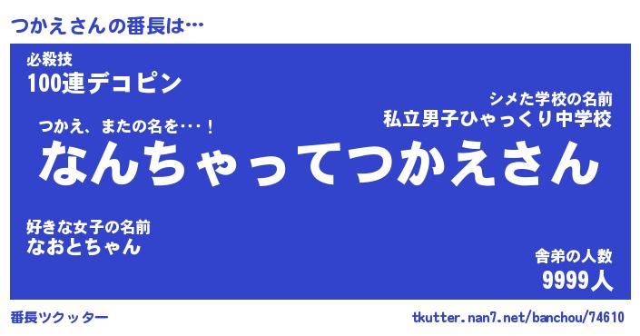 | ヒーロー風カッコイイあだ名 | 『スーパーツカエ』『ウルトラつかえマン』 |