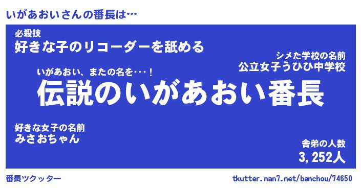 | 肩書あだ名 | 『いがあおい社長』『いがあおい総理大臣』 |