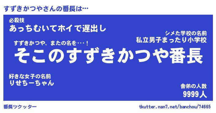 | ピコ太郎風あだ名 | 『スコ六郎』『ピス一郎』『スズ六郎』 |