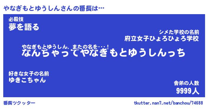 | ヒーロー風カッコイイあだ名 | 『スーパーヤナギモトユウシン』 |