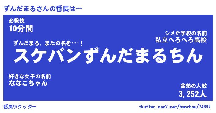 | ポケモン風あだ名 | 『ズンチュウ』『ズンダダネ』 |