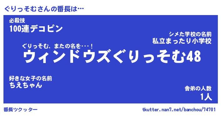 | 男性向けラノベタイトル風あだ名 | 『ぐりっそむの憂鬱』 |