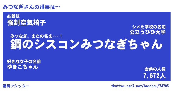 | 意味不明あだ名 | 『ペロリンみつなぎ』『永久保存みつなぎ』 |