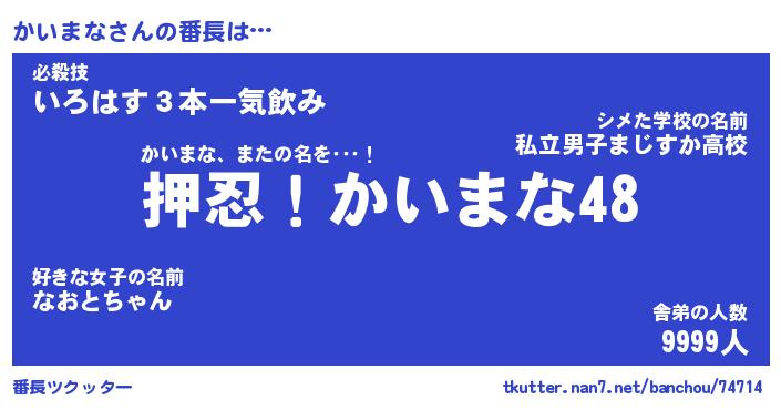 | 意味不明あだ名 | 『ペロリンかいまな』『永久保存かいまな』 |