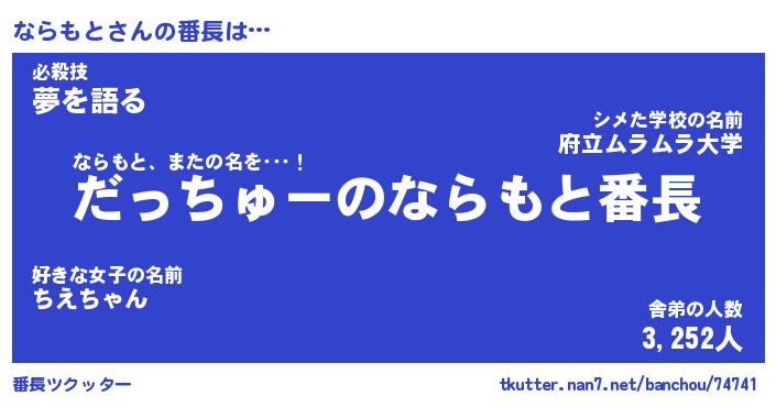 | ヒーロー風カッコイイあだ名 | 『スーパーナラモト』『魔戒騎士ナラ』 |