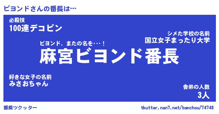 | 意味不明あだ名 | 『ペロリンビヨンド』『永久保存ビヨンド』 |