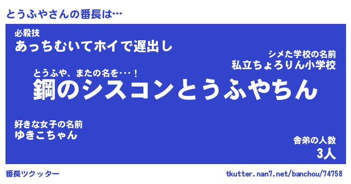 | ヒーロー風カッコイイあだ名 | 『スーパートウフヤ』『魔戒騎士トウ』 |