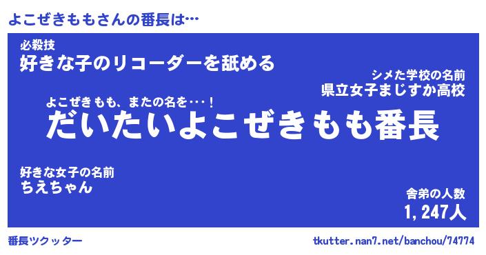 | 伝説のあだ名 | 『不死鳥のスナイパーよこぜきもも』 |