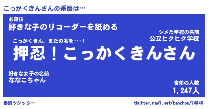 | ヒーロー風カッコイイあだ名 | 『スーパーコッカクキン』『銀牙騎士コッ』 |