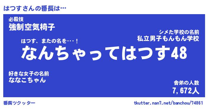 | ファンタジー風あだ名 | 『ハツフェル』『エターナルハツスー』 |