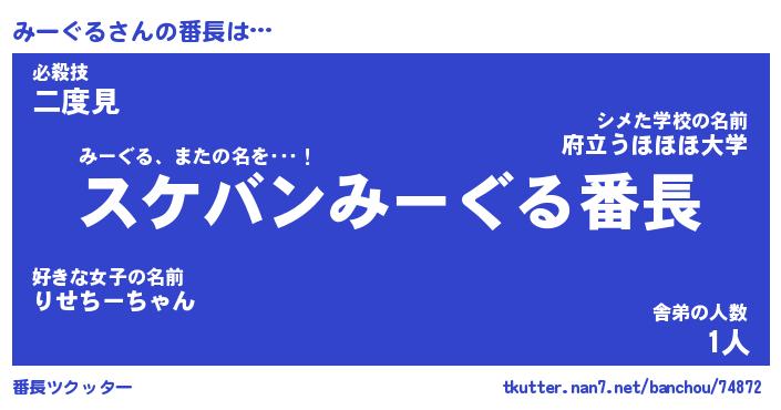 | 意味不明あだ名 | 『ペロリンみーぐる』『永久保存みーぐる』 |