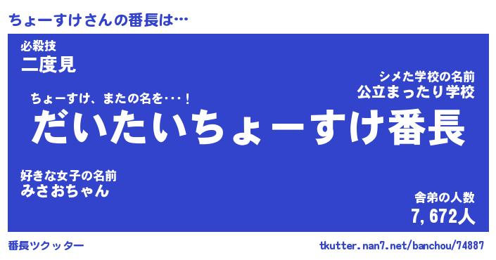 | 肩書あだ名 | 『ちょーすけ店長』『ちょーすけ総理大臣』 |
