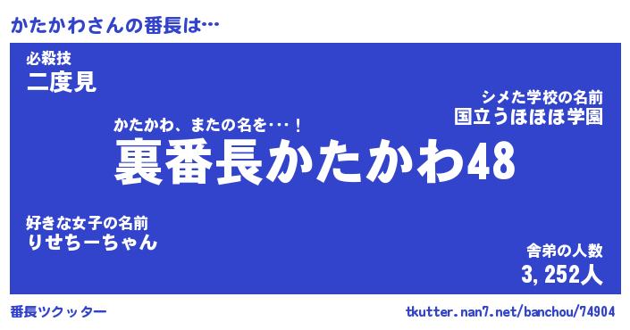 | 肩書あだ名 | 『かたかわ御曹司』『かたかわ大統領』 |