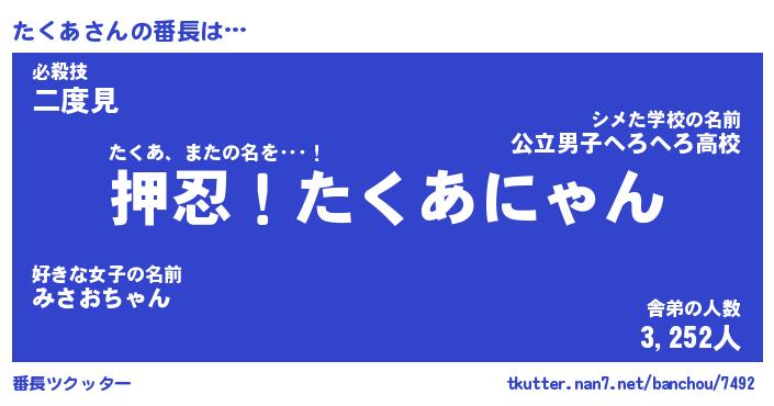 | ファンタジー風あだ名 | 『タクフェル』『エターナルタクアー』 |