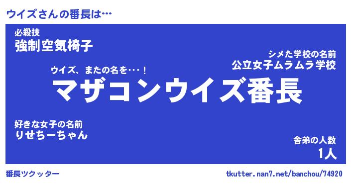 | ヒーロー風カッコイイあだ名 | 『スーパーウイズ』『ウルトラウイズマン』 |