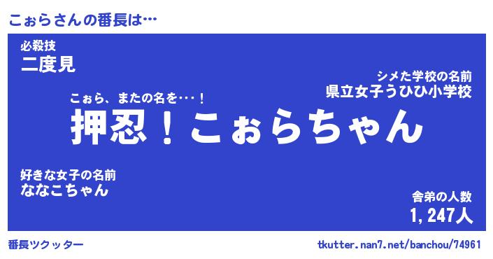 | 2回繰り返すあだ名 | 『こぉこぉ』『ここぉぉ』『ぬるぬる』 |