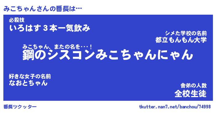 | ピコ太郎風あだ名 | 『ミコ一郎』『ピミ四郎』『ミコ十郎』 |