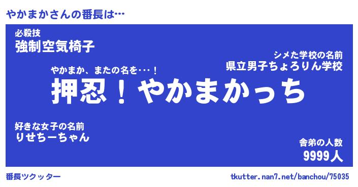 | 意味不明あだ名 | 『ペロリンやかまか』『永久保存やかまか』 |