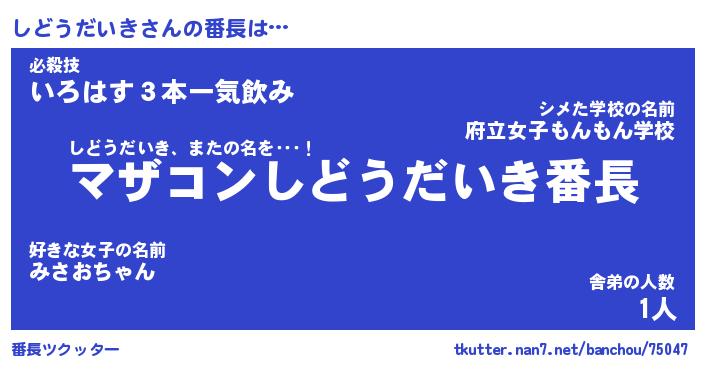 | 肩書あだ名 | 『しどうだいき社長』『しどうだいき教頭』 |