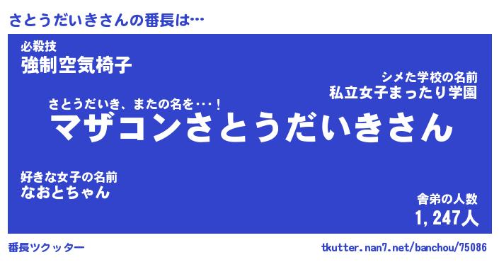 | ヒーロー風カッコイイあだ名 | 『スーパーサトウダイキ』『銀牙騎士サト』 |