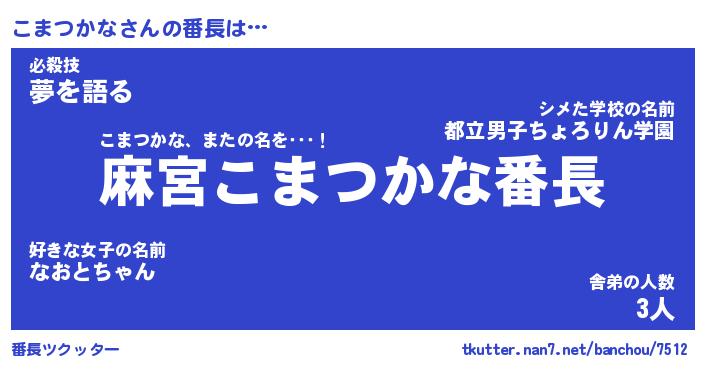 | ヒーロー風カッコイイあだ名 | 『スーパーコマツカナ』『魔戒騎士コマ』 |