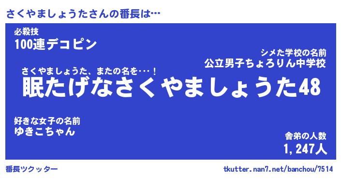 | 伝説のあだ名 | 『封印されしスナイパーさくやましょうた』 |