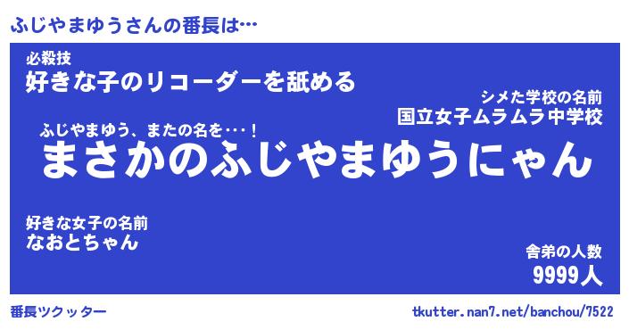 | 恥ずかしいあだ名 | 『プリティーふじやまゆう』『ふじっちょ』 |