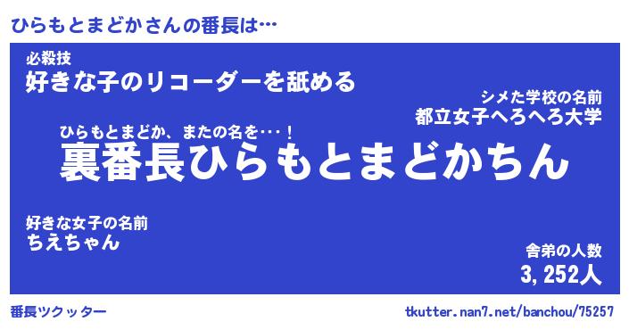 | ヒーロー風カッコイイあだ名 | 『スーパーヒラモトマドカ』 |