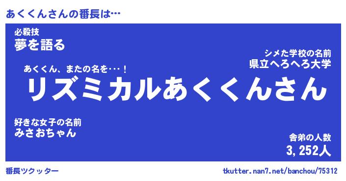 | 意味不明あだ名 | 『ペロリンあくくん』『永久保存あくくん』 |