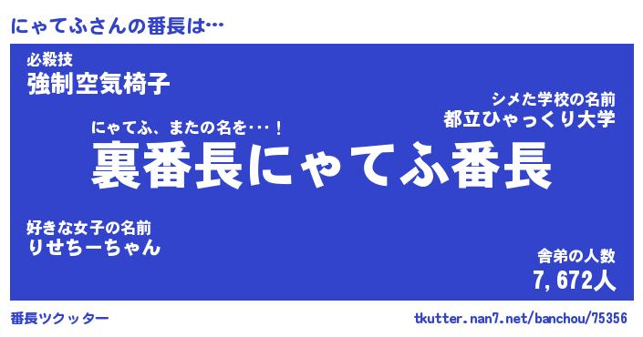 | 意味不明あだ名 | 『ペロリンにゃてふ』『永久保存にゃてふ』 |