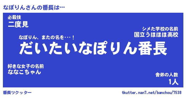 | 意味不明あだ名 | 『ペロリンなぽりん』『永久保存なぽりん』 |