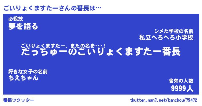 | ヒーロー風カッコイイあだ名 | 『スーパーゴイリョクマスター』 |