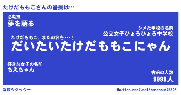 | 男性向けラノベタイトル風あだ名 | 『たけだももこの憂鬱』 |