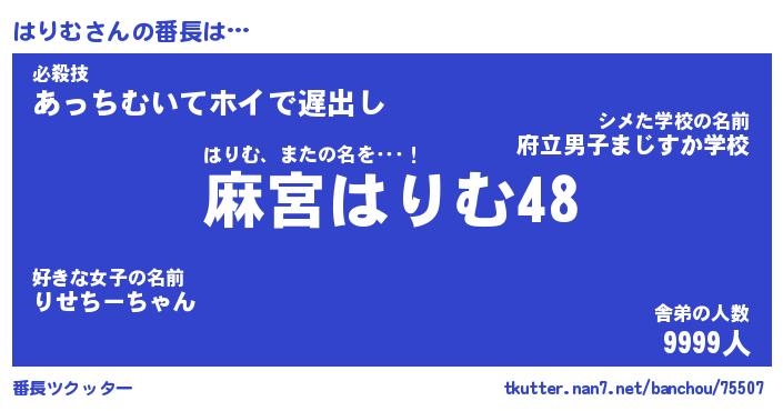 | 意味不明あだ名 | 『ペロリンはりむ』『はりむフォーエバー』 |