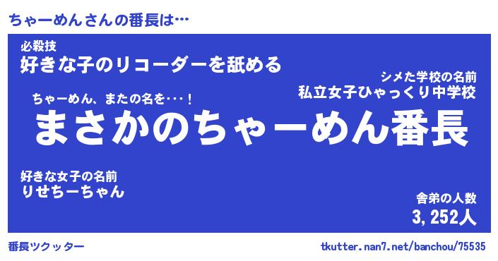 | 肩書あだ名 | 『ちゃーめん社長』『ちゃーめん国家主席』 |