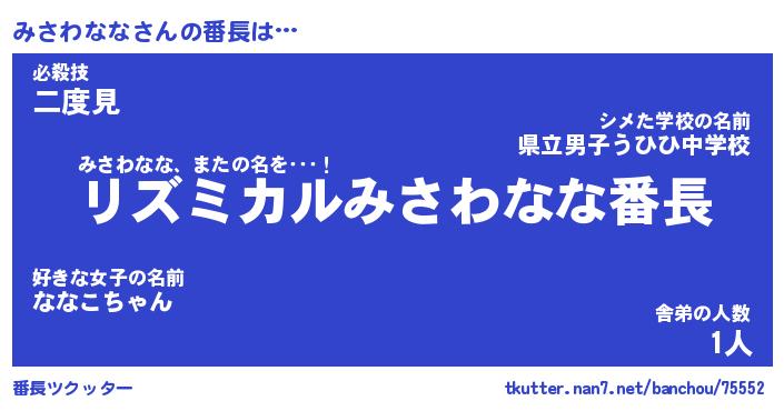 | ヒーロー風カッコイイあだ名 | 『スーパーミサワナナ』『黄金騎士ミサ』 |