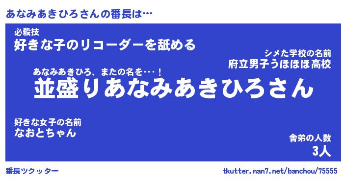 | 肩書あだ名 | 『あなみあきひろ御曹司』 |