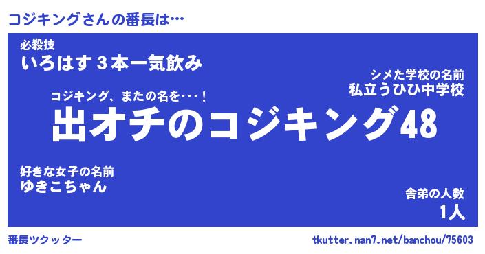 | 男性向けラノベタイトル風あだ名 | 『コジキングの憂鬱』 |