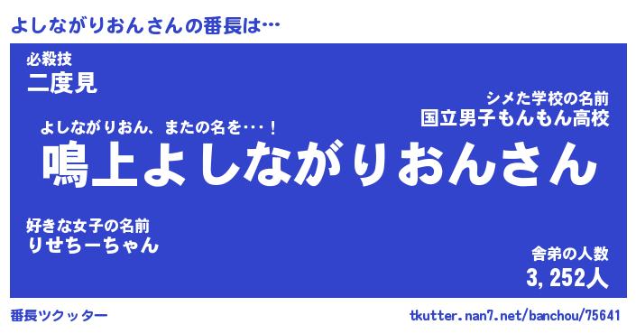 | 伝説のあだ名 | 『封印されしスナイパーよしながりおん』 |