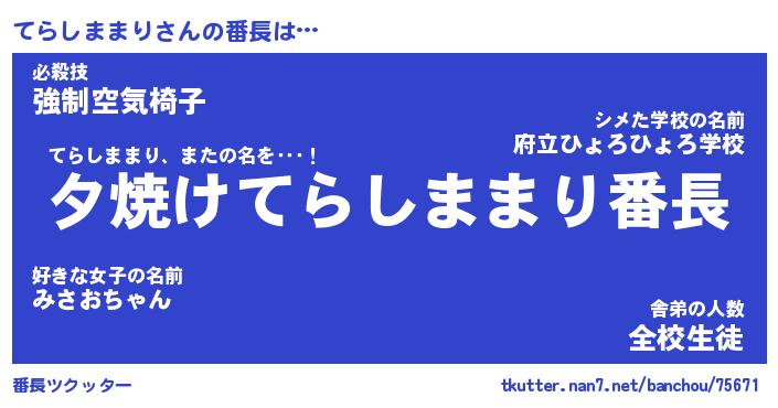 | ヒーロー風カッコイイあだ名 | 『スーパーテラシママリ』『暗黒騎士テラ』 |
