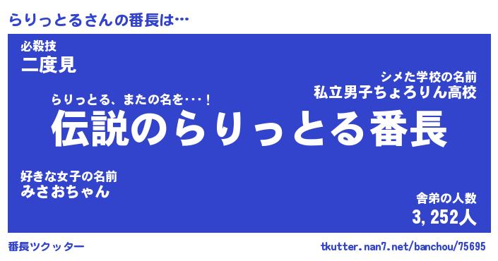 | 伝説のあだ名 | 『伝説のスナイパーらりっとる』 |
