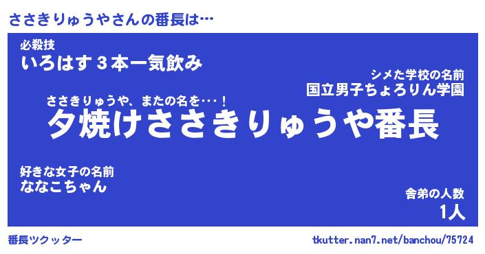 | ヒーロー風カッコイイあだ名 | 『スーパーササキリュウヤ』 |