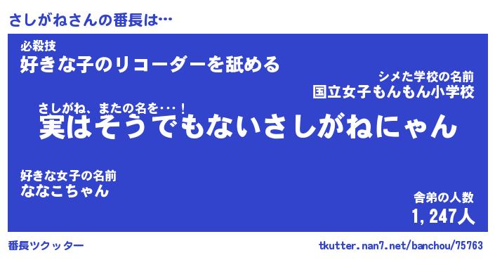 | ファンタジー風あだ名 | 『サシフェル』『エターナルサシガネー』 |