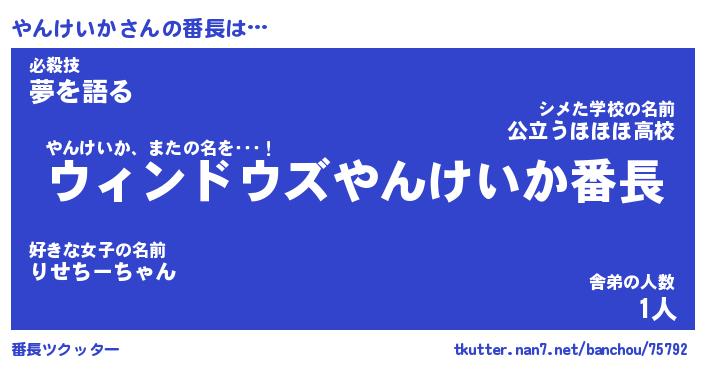 | ファンタジー風あだ名 | 『ヤンフェル』『エターナルヤンケイカー』 |