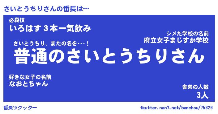 | ヒーロー風カッコイイあだ名 | 『スーパーサイトウチリ』『炎刃騎士サイ』 |