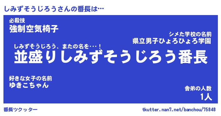 | ヒーロー風カッコイイあだ名 | 『スーパーシミズソウジロウ』 |