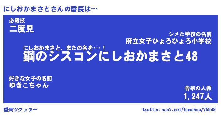 | 肩書あだ名 | 『にしおかまさと御曹司』 |