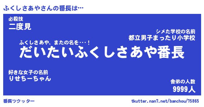 | ポケモン風あだ名 | 『フクチュウ』『フクシダネ』 |
